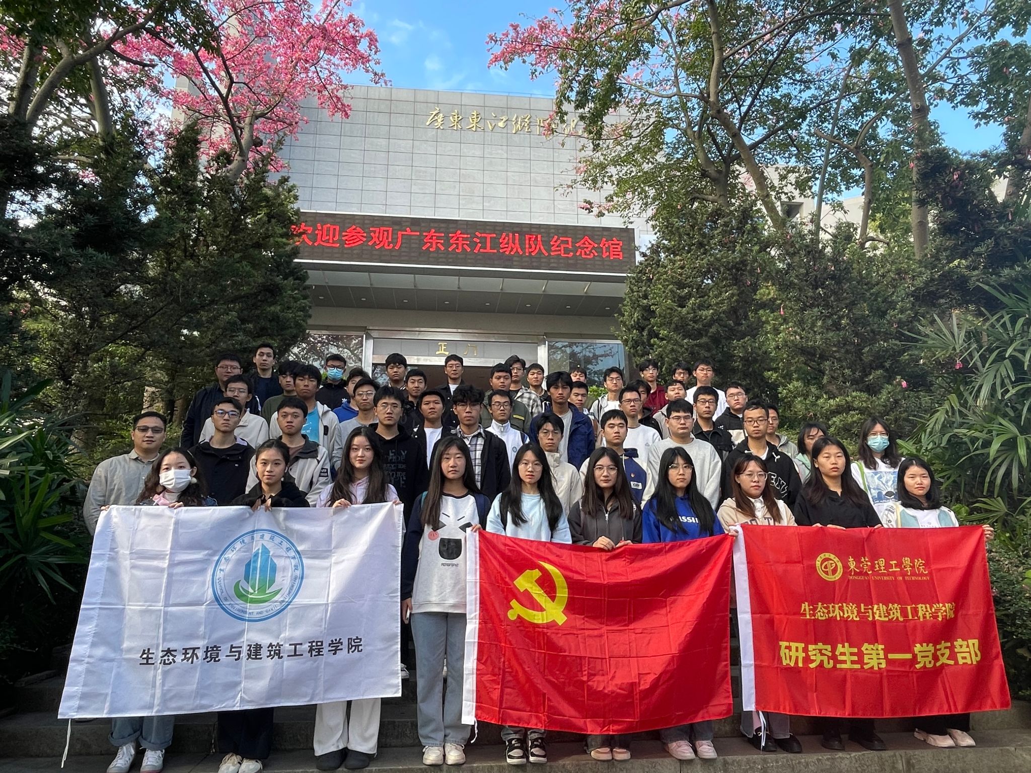 12月2日上午,为深化学习宣传贯彻习近平文化思想,由李春志老师带队,研究生第一党支部、23级本科生各班级学生代表等54人,前往东莞大岭山走进东江纵队纪念馆,开展为期半天的现场学习,加强对东莞及广东本土红色文化的了解和认知,尤其了解东莞抗战历史,感受革命传统教育文化浸润,厚植爱国主义情怀。