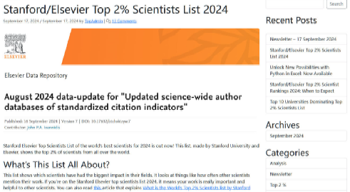 2024年9月16日,美国斯坦福大学(Stanford University)发布了2024年全球前2%顶尖科学家榜单 (World's Top 2% Scientists)。anime1