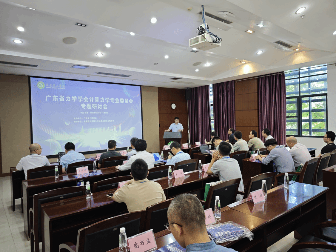 行政负责人张伟伟致欢迎辞,并代表学院对各位专家的莅临表示热烈欢迎和衷心感谢。随后,广东省力学学会计算力学专业委员会副主任委员魏鹏发表讲话,强调了此次研讨会在促进广东省计算力学学术交流、技术创新与产业应用中的重要作用。