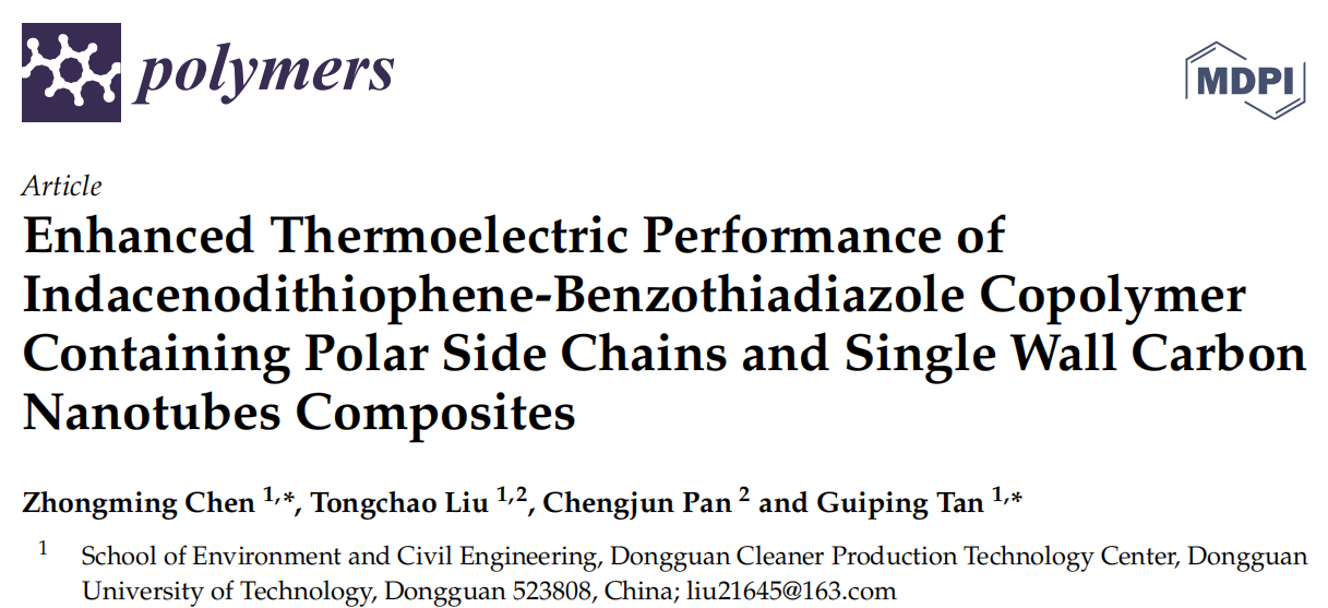 为第一单位于2020年4月7日发表在中科院大类二区期刊《Polymers》: Polymers, 2020, 12(4), 848,其中陈忠明博士为第一作者,anime1