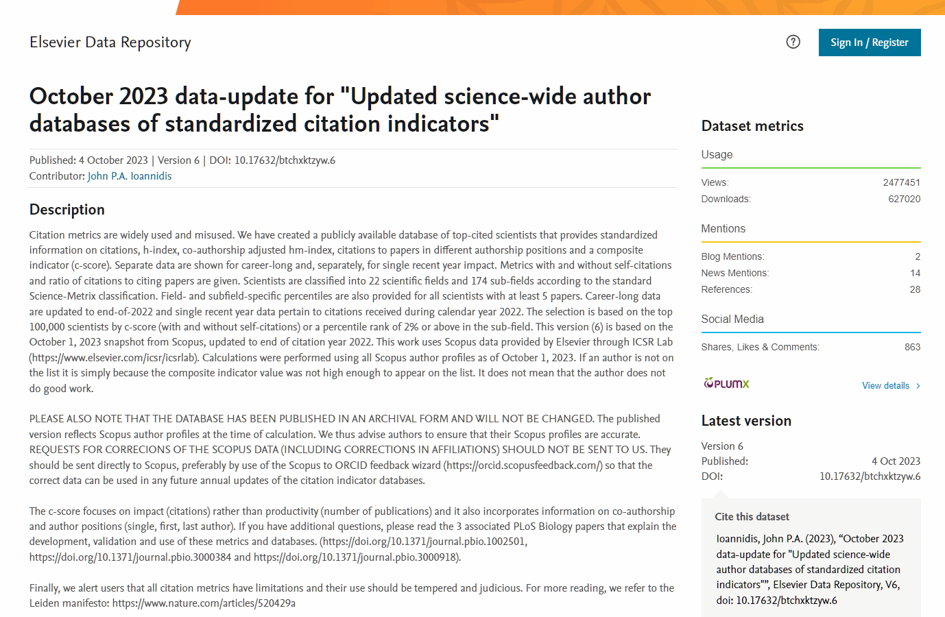 2023年10月4日,美国斯坦福大学和爱思唯尔数据库发布了最新《2023年度全球前2%顶尖科学家榜单》(Stanford University Top 2% Scientists List 2022),anime1