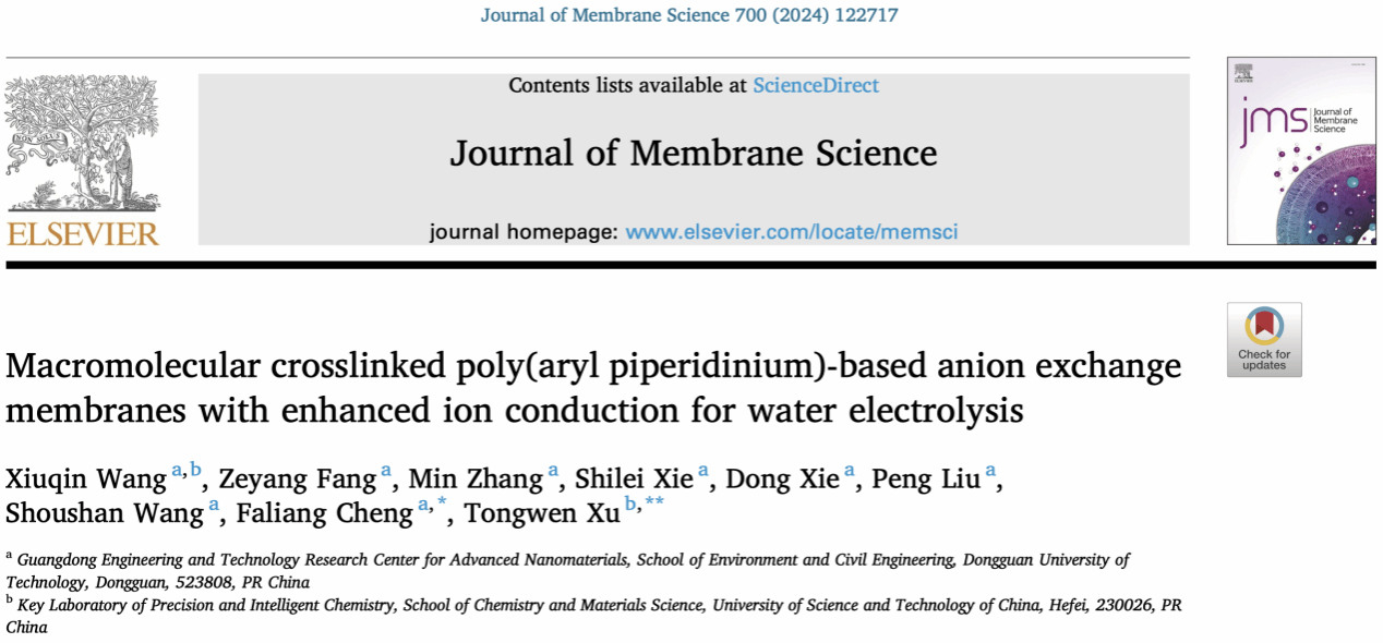 王秀琴博士近期在阴离子交换膜电解水制氢领域取得重要研究进展。该成果以“Macromolecular crosslinked poly(aryl piperidinium)-based anion exchange membranes with enhanced ion conduction for water electrolysis”为题发表在国际著名期刊《Journal of Membrane Science》(IF = 9.5,中科院一区Top)。该论文第一署名单位为anime1