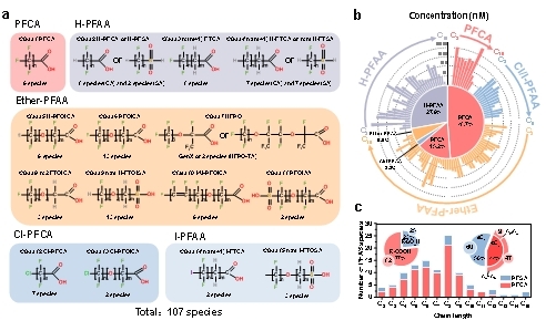 PFAS是一类人工合成的化学品,因其疏水拒油以及优异的热稳定性和化学惰性,被广泛应用于工业生产,导致该类化学物在全球范围内频繁检出。大量研究表明PFAS与癌症、生殖毒性等严重健康风险密切相关。氟化工污水中存在数百种PFAS且结构高度复杂多样,如羧酸、磺酸、醚类及氢代或卤代衍生物,传统吸附技术(活性炭、离子交换树脂)因污水中背景基质干扰(如溶解性有机物、无机阴离子)以及吸附选择性不足,难以实现广谱高效去除。如何从复杂废水中同步捕获多种PFAS,并降低处理成本与碳足迹,是当前PFAS污染治理的核心挑战。发表在《Nature Communications》的研究受矿物浮选工艺的半胶束吸附机制启发,提出了逆向矿物浮选过程,发现Zn基电絮凝原位生成的“零碳”吸附剂疏水性Zn羟基聚合絮体能够选择性超容量吸附污水中疏水性PFAS(log Kow > 4),同时有效削减污水中的背景干扰物。提出的“Zn基电絮凝-吸附”联用策略,实现了对氟化工废水中107种PFAS的广谱捕获。技术经济分析与生命周期环境影响评估表明,相较于传统的单一吸附工艺,耦合Zn基电絮凝处理成本降低一个数量级,碳足迹减少70%。此外,研究还发现碘代PFAS(I-PFAA)因碘原子取代氟原子显著提升疏水性与吸附选择性,同时能够被自然降解,这一发现或为环境友好型PFAS替代品的设计提供全新启示。