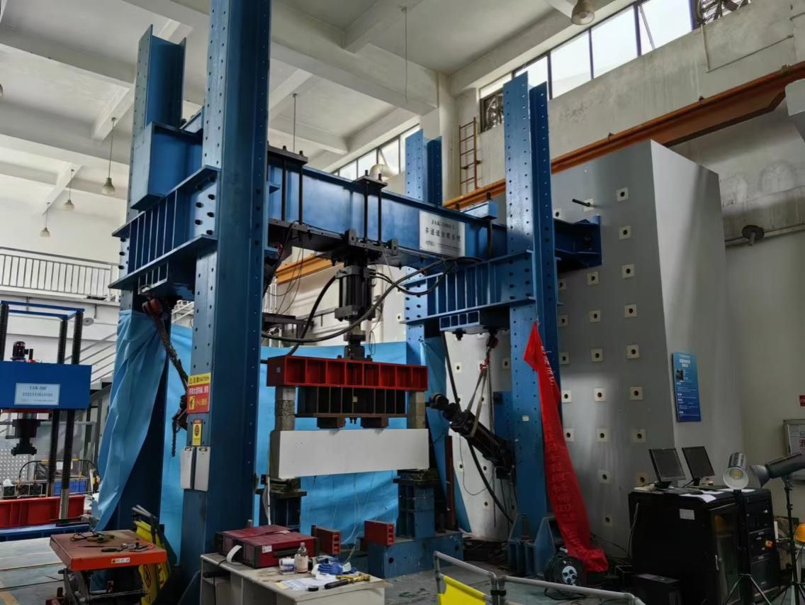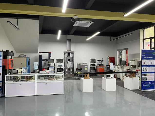 结构实验室总建筑面积达384平方米,包括四台大型加载仪器,总价值约210万,其中包含杭州邦威多通道伺服加载系统、50吨疲劳加载作动器系统、500微机控制电液伺服压力机、高精度玻璃钢管缠绕机。