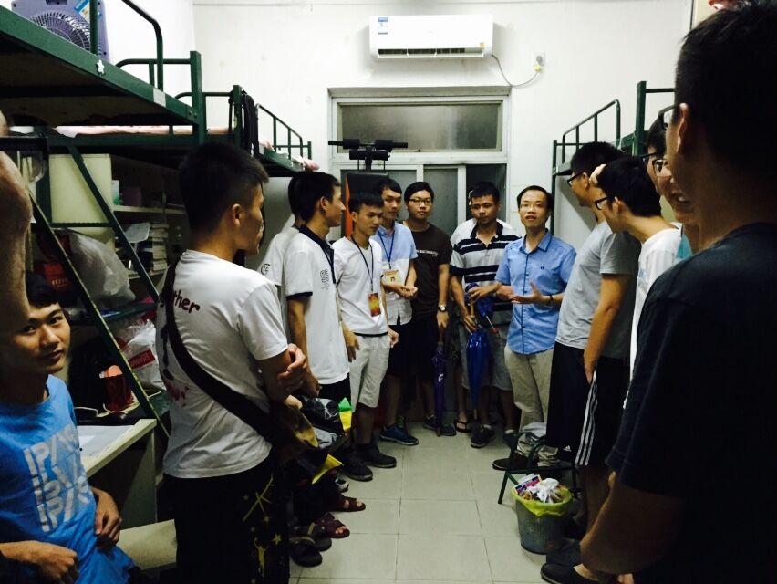 辅导员文锦枢走访2014级学生宿舍,随行的有anime1