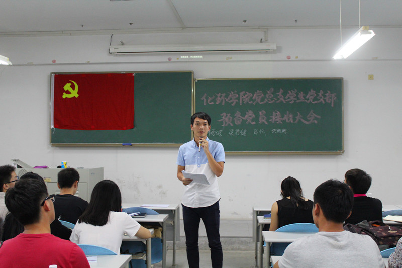 紧接着,16名发展对象汇报个人在思想、学习和工作等方面的具体情况以及优缺点,并简要介绍了自己的家庭成员和主要社会关系。接下来,两名入党介绍人分别宣读介绍人意见。而后,由丘小倍同志宣读该发展对象的综合政审情况,谢宏浩同志宣读发展对象的群众意见,陈灿奎同志宣读发展对象考察期间的学年成绩综合排名。并由其他党员就根据他们对发展对象的了解,发表自己的评价。