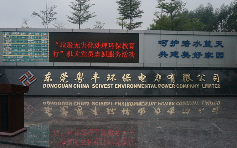 东莞粤丰环保电力有限公司位于东莞市东城与南城交界处,该公司是全国第一所达到欧盟2000标准的垃圾处理公司,采用德国马丁路式垃圾焚烧系统,日处理生活垃圾1600吨,公司内建有污水净化系统,用来给厂里的绿化和冷却提供用水,此外还实现了公司内用电完全自给,为建设生态东莞起到了带头模范的作用。