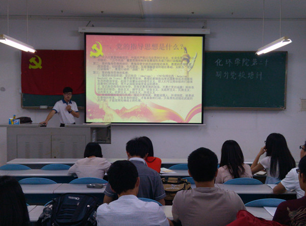 辅导员陈泳源老师主讲,11名入党积极分子参加了本次培训。陈老师主要围绕“党的指导思想及其发展历