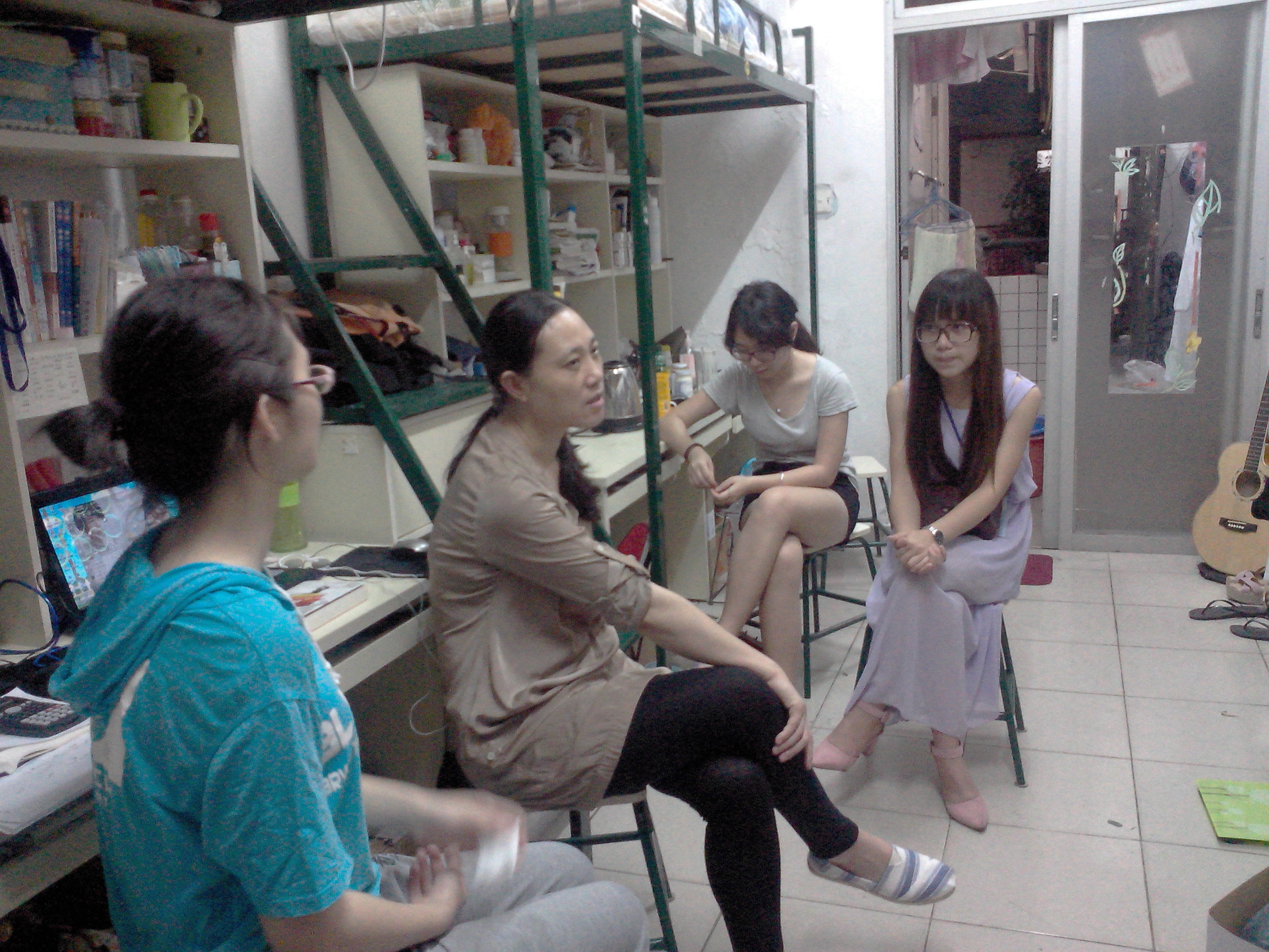 党总支副书记袁荫贞走访大二女生宿舍,随行的有学生会主席助理陈丽欢,学习部副部长徐蓉珊。