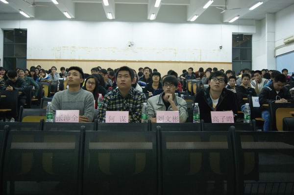 2013校园文化艺术节之宿舍节能比赛决赛在6E308正式举行。化环学院学生会主席何谋、绿色环保协会会长刘文彬、学生会的三位副主席及绿协的三位部长出席并担任本次决赛的嘉宾评委。本次比赛共有六个宿舍晋级决赛,他们将会对他们节能过程中所采取的方法进行讲述。