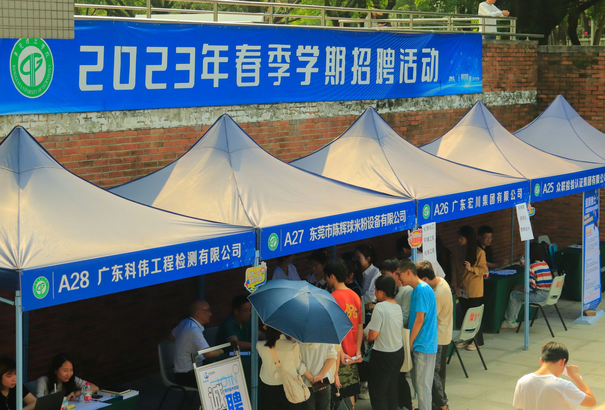 和化学工程与能源技术学院在松山湖校区学思广场联合举办现场招聘会。本次招聘会共吸引39家企业参加。