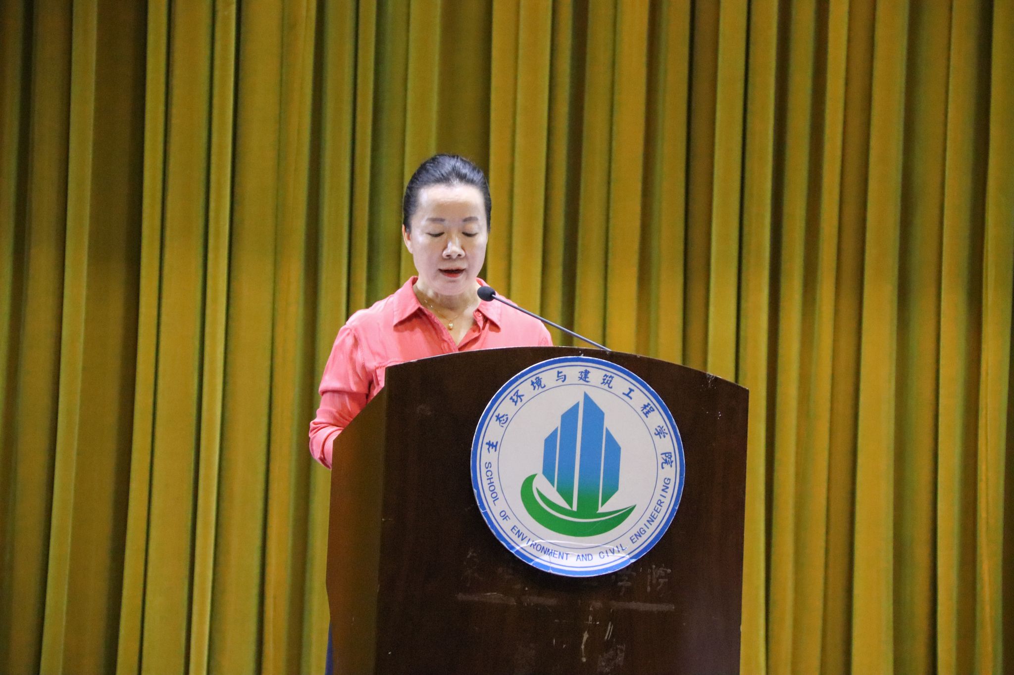 随后,来自2023级土木工程1班的苏心兰同学作为新生代表上台分享入学教育心得,激励环建学子牢记“学而知不足”校训,共同承担起当代新青年责任,投入到对建筑的保护、对环境的保护等行动中去,努力掌握所学知识,探索新型工程技术,立志成为专业领域人才,为国家社会建设注入新鲜血液。