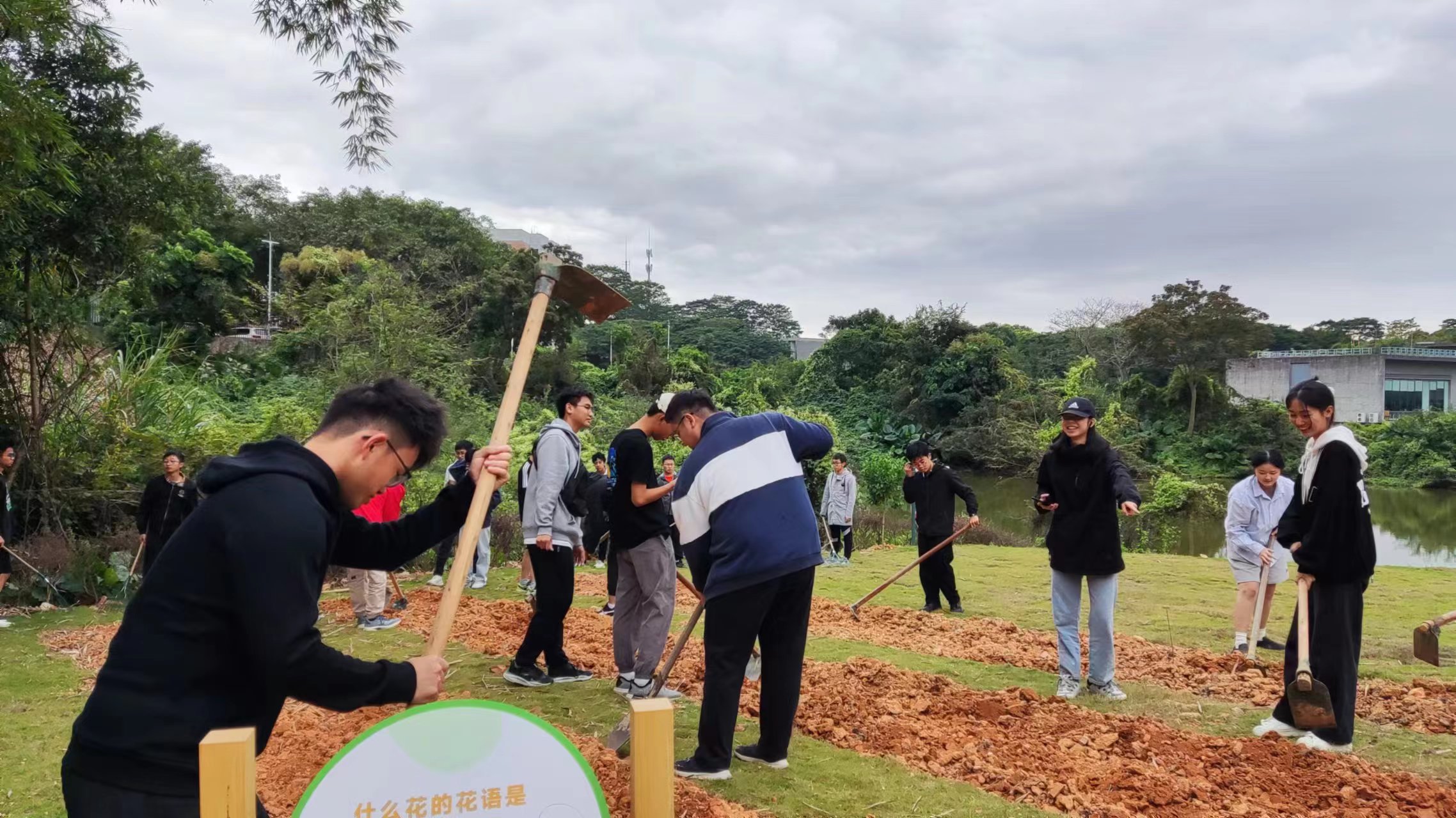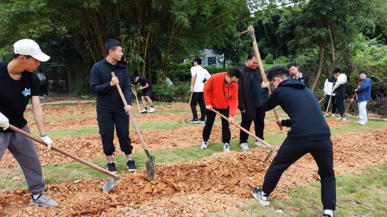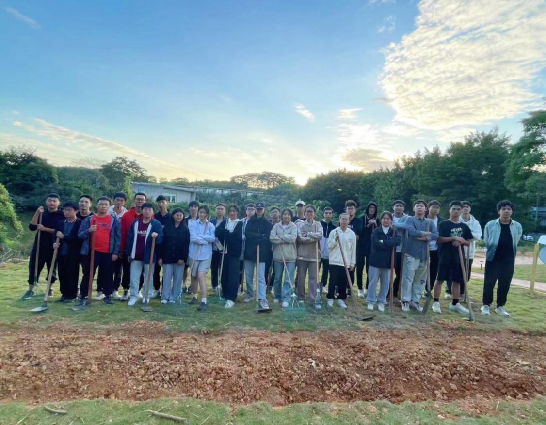 2023级环境工程3班全体学生在松山湖校区学思广场“培根园”开展主题班级活动。李春志老师为同学讲解“培根园”劳作事项,刘勉老师为同学示范锄地、松土及撒黑壤,同学们积极参与劳作。在师生共同参与劳作的过程中,同学们也在夯实自身的劳动意识,树立起尊重劳动、热爱劳动、弘扬劳动的品质,以及正确的劳动观念和劳动态度。