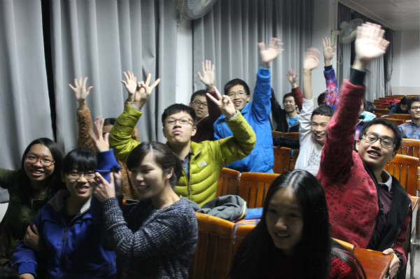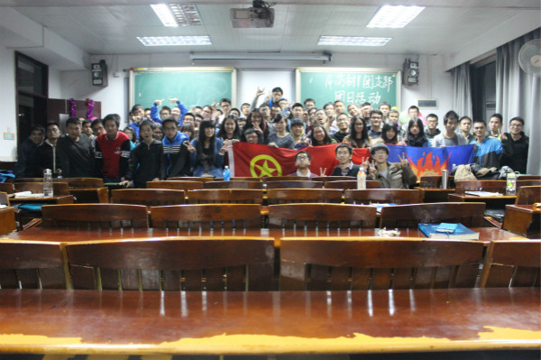 为了进一步加强团员青年之间思想的交流,让团年青年们走出思想禁锢,走出宿舍,2014年12月16日晚19:30到21:00于莞城校区2407课室开展以“我三走 我青春 我健康”为主题的团日活动——“灵动方程式,走进奇妙化学世界”。出席本次活动的有anime1