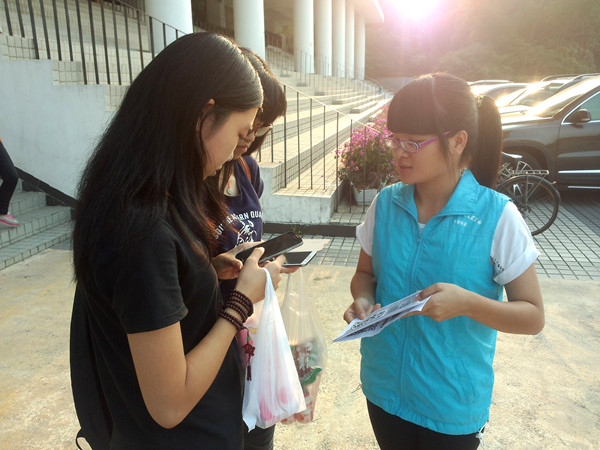 此次活动形式简单,只要用微信扫一扫二维码便可以参与该公益活动,但要学生停下脚步去扫一扫东莞银行的二维码,不仅是对志愿者口才和说服力的一种考验,也能体现当今大学生参与公益活动的积极性。