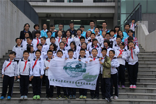 最后,环教队的志愿者们与同学们照相留念。在本次的活动中,环教队员分工明确,成功完成了在东莞中心小学的环教活动。这次环教活动更让小学生全方位了解生活废旧物品的回收与利用,培养他们的环保意识和理念,带动身边的人关注环保,共同保护地球人赖以生存的家园。
