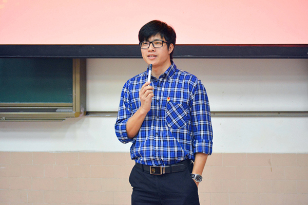 会议伊始,大会以视频的形式回顾了这半个月来主题团支部会议活动过程中的精彩片段,一张张充满美好回忆的照片在舒缓的音乐中轮番播放,现场气氛顿时变得温馨无比。随后,主持人介绍了莅临大会的各位领导老师和嘉宾,标志着本次大会正式开始。紧接着是组织宣传部部长吴湘民上台致辞,他对14级各团支部的表现给予充分肯定,同时指出了活动过程中存在的不足。