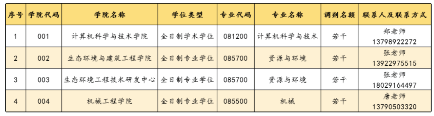 我校2021年接收调剂生的专业有计算机科学与技术、资源与环境、机械,具体信息如下: