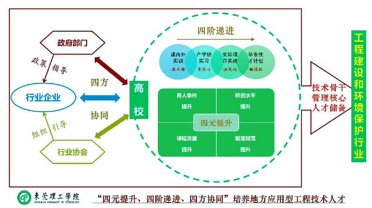 始终秉持着培养、输送具有创新精神和实践能力的高素质、应用型工程技术人才的职责,打破拘囿、开拓创新,以教学质量为生命线,不断深化教育教学改革,实践育人,创新育人,构建了“四元提升、四阶递进、四方协同”的地方应用型工程技术人才培养体系,并经过多年实践和推广应用,形成了鲜明的人才培养特色,推动我校工程建设和环境保护等领域工程技术人才培养质量显著提升。