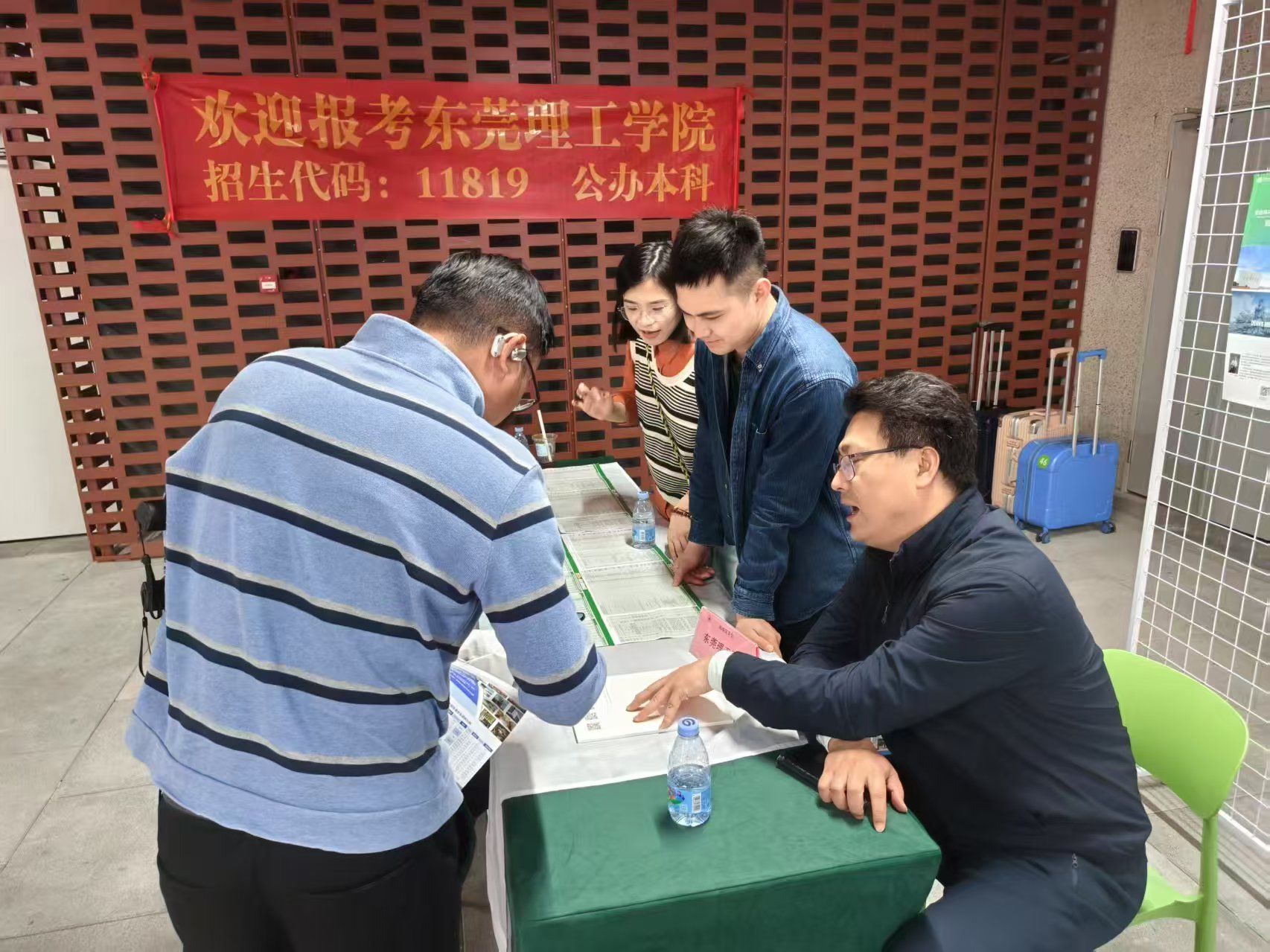 左洋老师与现场的考生家长展开热情互动,为家长们介绍学校及学院各专业的招生情况,并耐心解答所咨询的相关问题。