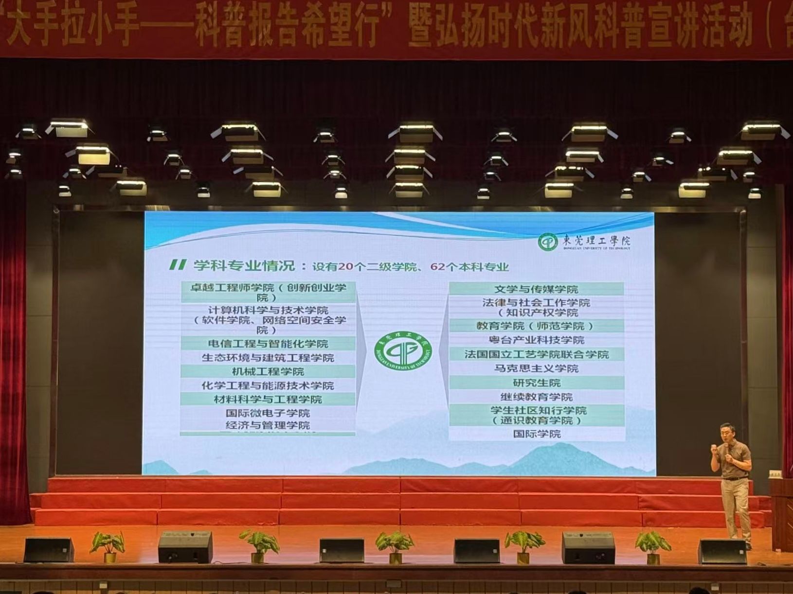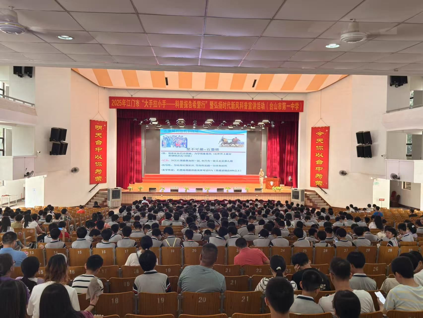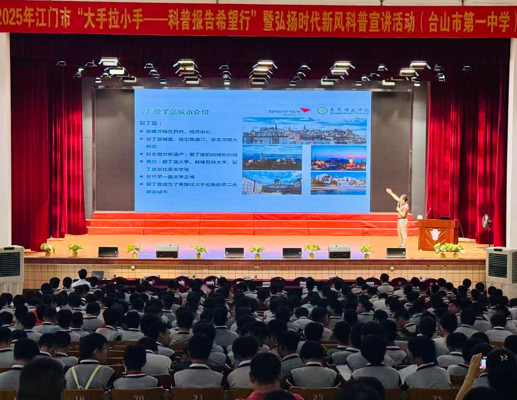 招生宣传走访队伍,为江门市台山一中的学子和家长带来通识课讲座、科技成果展演、国际化培养项目推广、招生咨询服务等多形式的“高校文化进中学”活动。