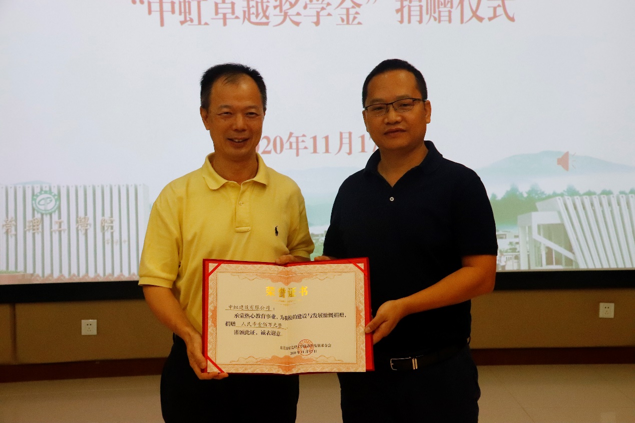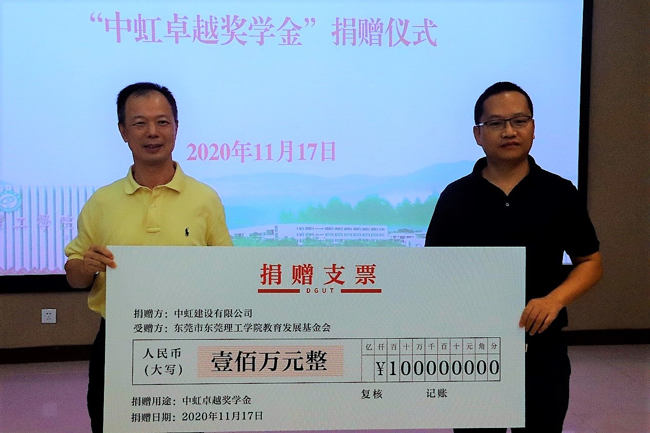 与中虹建设有限公司在松山湖校区学术会议中心301举行捐赠仪式。中虹建设有限公司董事长黎磊落、总经理黎晃厚等公司代表,anime1