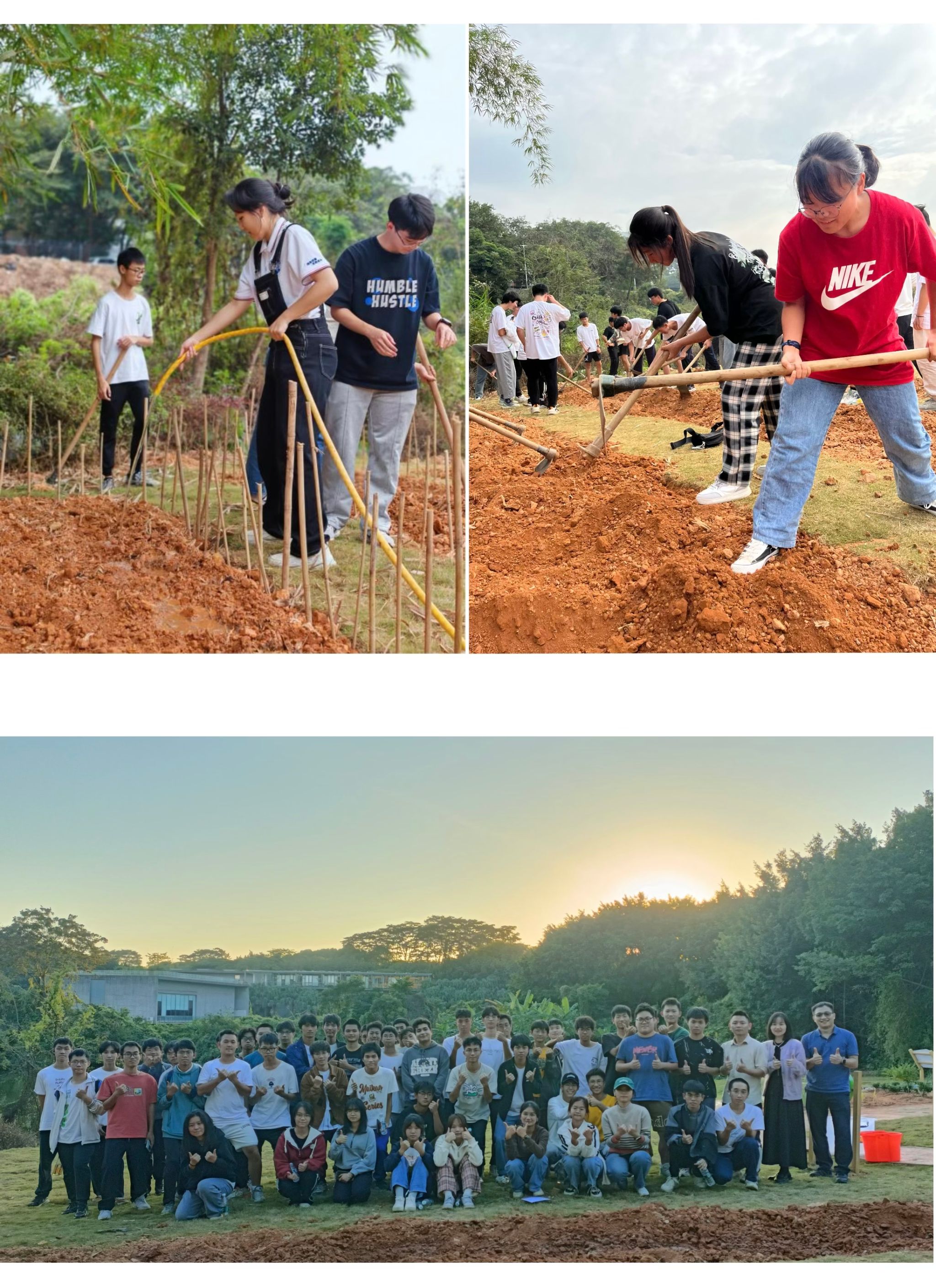 躬身田野实践,劳育动手思维。在第一学期里,遵循“知行合一、立德树人”总原则,学院以学校通识教育七大核心能力培养目标为依据,发挥劳育综合育人功能,从第10周开始,新生各班集体在政治辅导员带领下,在校内“培根园”开展田野种植主题班级活动,以劳育“新”,以劳育心。