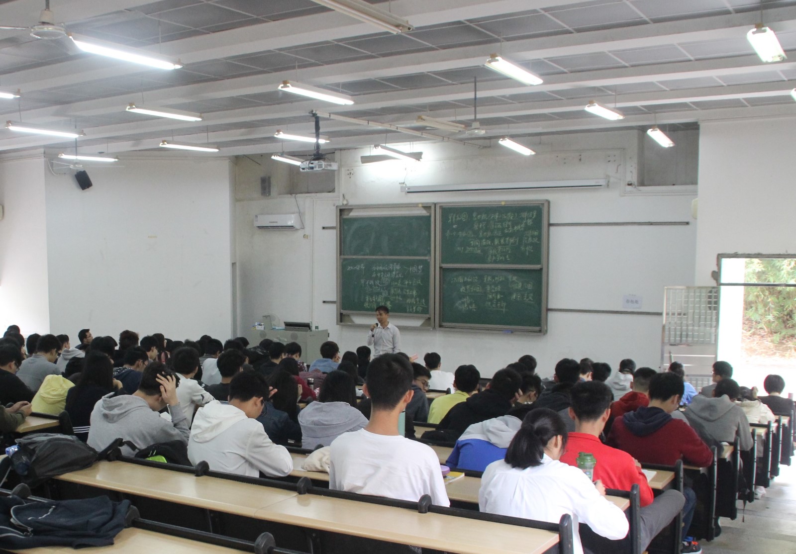 党支部书记李纠老师于综合教学楼6e104为各级辅导员与17级环境工程专业的同学授课思想道德与政治。