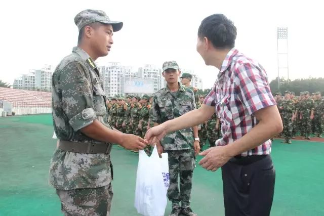 的各个连队。在与新生的交流中,曾书记指出,军训可以磨炼人的意志,希望同学们要珍惜这10几天的军训时间,做到听从指挥,服从命令,锻就强健体魄,增强国防意识。新生听完曾书记的教诲后,纷纷以热烈的掌声表示对所有老师的感谢。