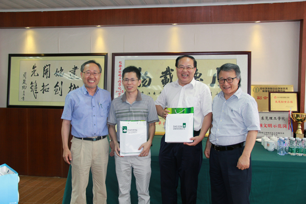 与韩国大田大学具有良好的合作前景,希望下一步两校之间的合作能够更加广泛、更加深入,并就近期我校在广东省及东莞市的大力支持下建立高水平理工科大学的背景进行了介绍。林凤洙对学院的热情接待表示感谢,祝愿学校在今后的发展过程中取得更大的成就。双方就学生交流、人才培养等方面的情况进行了深入交流。