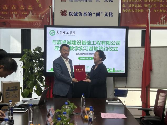 为贯彻党中央、国务院关于“稳就业”“保就业”决策部署,扎实推进“访企拓岗促就业”专项行动,1月13日,学院高峰副院长、诸小妮副书记带领系主任、辅导员及2025届本科毕业生代表走访东莞市嘉誉诚建设基础工程有限公司,开展“嘉誉诚助学金捐赠暨教学实习基地签约仪式”。