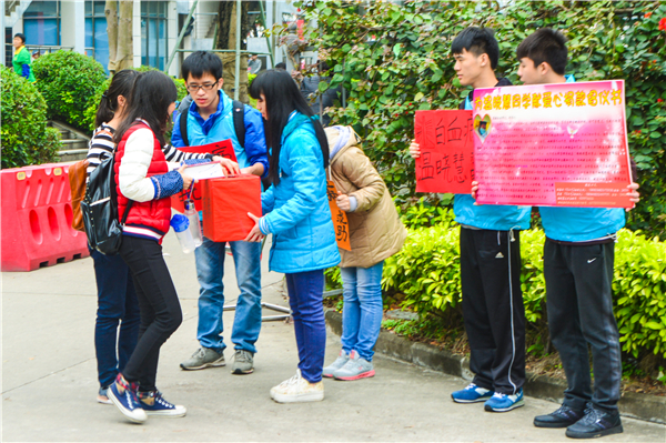 2013级应用化学(化工工艺)2班分别在莞城校区与松山湖校区为身患急性白血病的温晓慧同学举行爱心募捐活动,在校园里谱写出了温暖动人的爱的乐章。