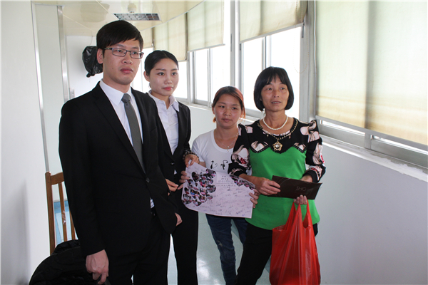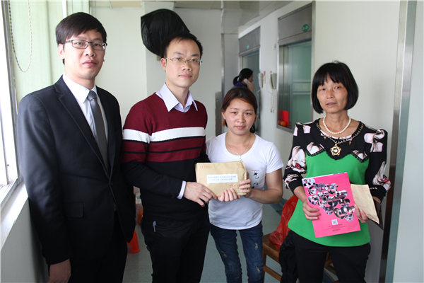 善款2000元、化环学院校友会理事会及其好友捐赠23700元和银丰逸居酒店善款10000元,总计此行善款总额59100元。除此以外,银丰逸居酒店代表人员还带来了银丰逸居酒店特意为晓慧制作的心意卡,卡上面有酒店全体员工的签名和早日康复的祝福语。当晓慧母亲接过善款和心意卡,已感动得泣不成声,用家乡话一次一次地对各位领导老师和社会人士以及同学对晓慧的关爱表达万二分的感谢。