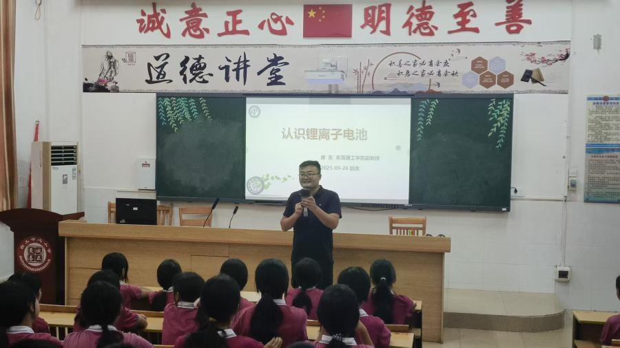 “科普先生”系列活动:9月26日,谢东副教授在曲江区白土镇中心小学,以《认识锂离子电池》为主题,通过“诺贝尔奖得主励志故事+生活化实验演示+趣味问答”模式,讲解电池原理与环保知识,引导学生“像科学家一样思考”;此前,团队还通过《当科学遇上魔法:干冰烟雾与化学龙珠的秘密》等活动,让乡村孩子近距离感受科技魅力。