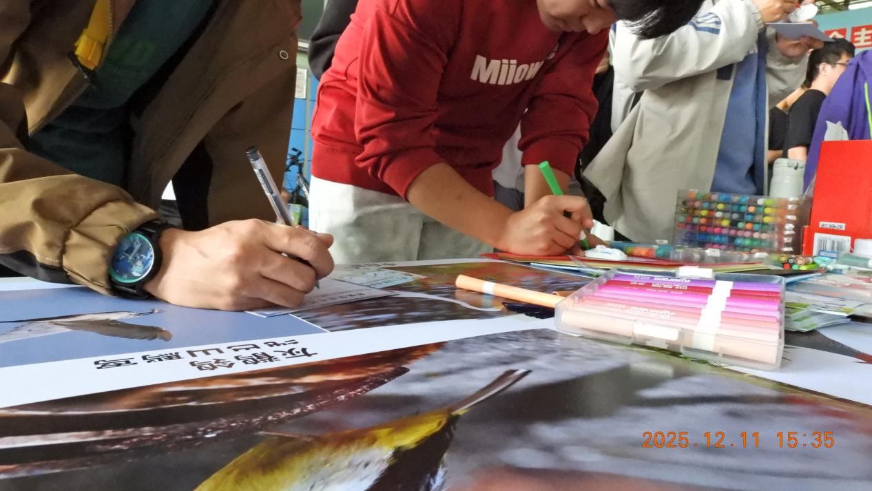 除了干货满满的科普宣讲,现场设置的沉浸式游园趣味环节更是点燃了同学们的参与热情。鸟类图鉴“极速抢答”考验大家对鸟类知识的快速反应与记忆;鸟鸣盲听“声纹识鸟”让同学们闭上眼睛,通过分辨不同鸟类的鸣叫声感受自然韵律;鸟类拼图“拼速大作战”在动手动脑中加深对鸟类外形的认知;迁徙路线“快闪冲锋”让同学们在模拟迁徙过程中体会鸟类生存的不易;护鸟行动“创意涂鸦”则为同学们提供了表达生态愿景的平台,大家用画笔勾勒心中的护鸟场景、低碳生活蓝图。每个环节都人气高涨,同学们在轻松愉悦的互动中近距离感受鸟类魅力,深化对湿地保护、生态平衡的理解,将“爱护鸟类、践行低碳”的理念内化于心。