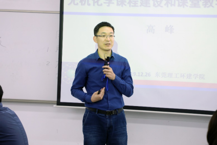 本次沙龙活动由副院长孙璨主持。活动首先邀请了“无机化学”课程团队负责人高峰老师分享课程建设经验和教学改革心得。高峰老师结合近年来带领课程团队开展“无机化学”课程建设的主要发展历程,重点阐述了如何合理确定教学目标、有效设计教学过程,并系统介绍了混合式教学模式改革的先进方法和宝贵经验。