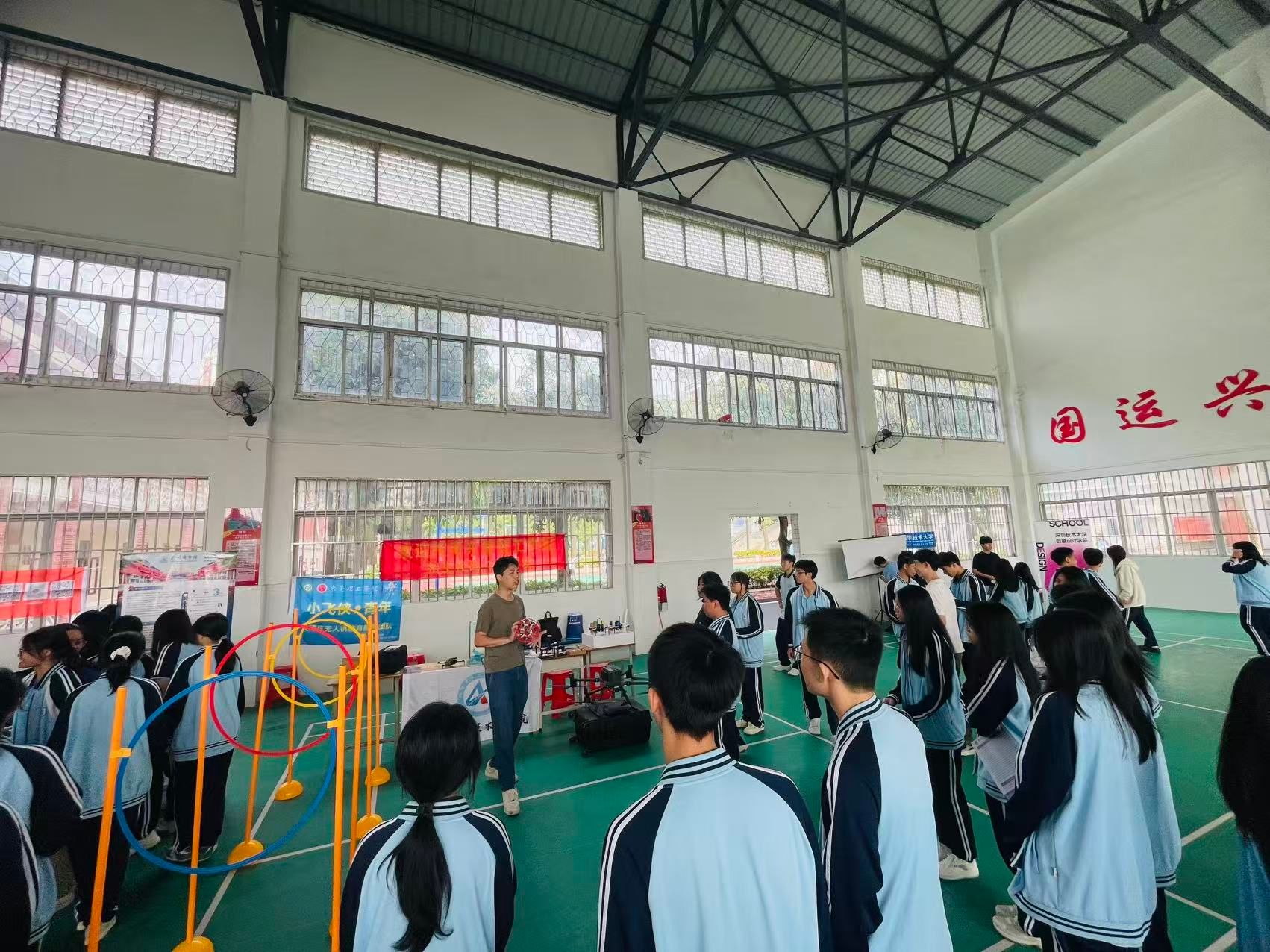 招生宣传团队携国际空天技术研究院师生到访江门市开平第一中学,应邀参加由该校承办的2026年开平市中小学生信息科技创新大赛暨“小小科学家”科学实验活动,空天院曾志华老师为当地学子带来无人机技术现场教学和工业应用展示,在学科技术生动展示的互动加持下,家长学子对我校了解的热情持续高涨。