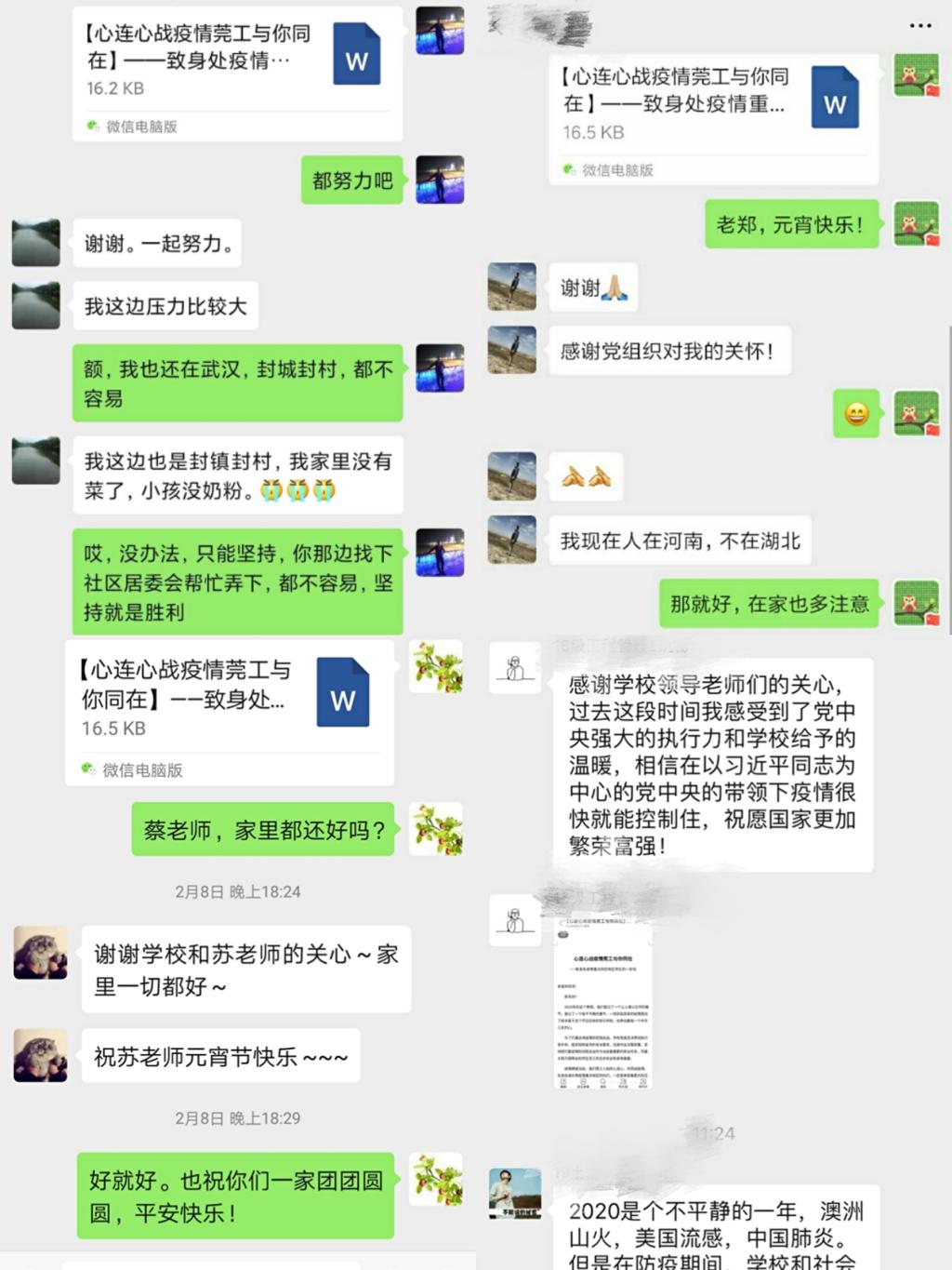 各党支部书记向湖北籍师生发出的线上关怀