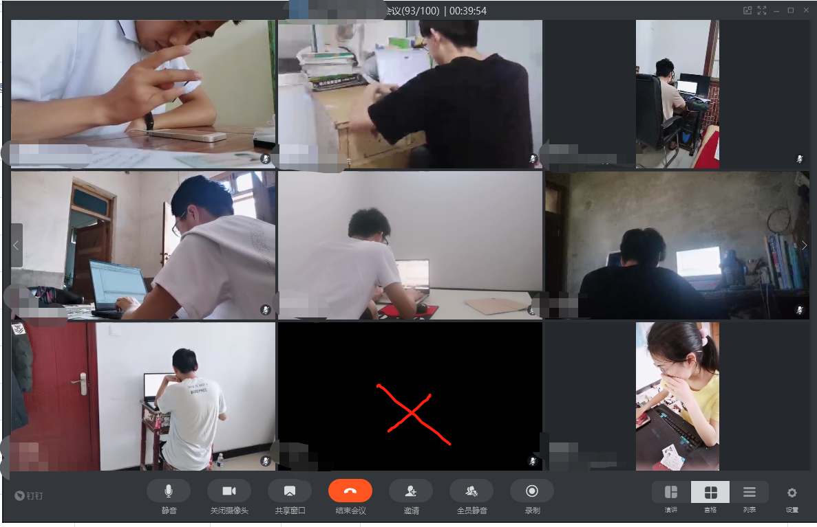 针对线上监考难度大的问题,方案中特别指出,闭卷考试课程由学院统一安排考场组织及监考老师,提前通过企业微信组建考试小群,将学生分成20-25人的小组,每个考试群安排一名监考老师和一名巡考老师(一般由任课老师担任),并通过视频会议模式,要求全员开启摄像头,全过程监控,同时采用录屏软件全程录像。监控摄像头须能对准学生考试全景,要求学生采用手机登录企业微信,从侧后方拍摄角度最佳(如下图所示)。