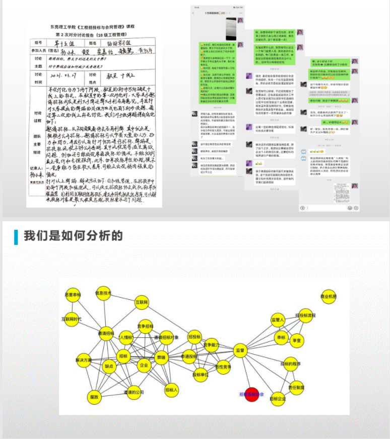 于博士以《工程招投标与合同管理》课程的混合式教学实践作为案例,展示了较为典型的教学片段,罗列出对分讨论所遇到的三大挑战。对此,于博士提供了一条独特的解决路径——技术+教法的融合,分享了她运用学习工具的思路,针对各项挑战,逐一进行分析,给出切实可行的解决方案。