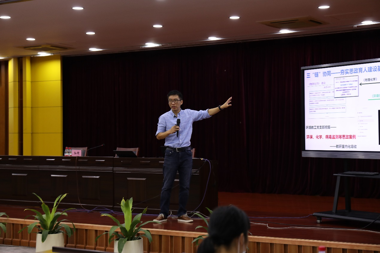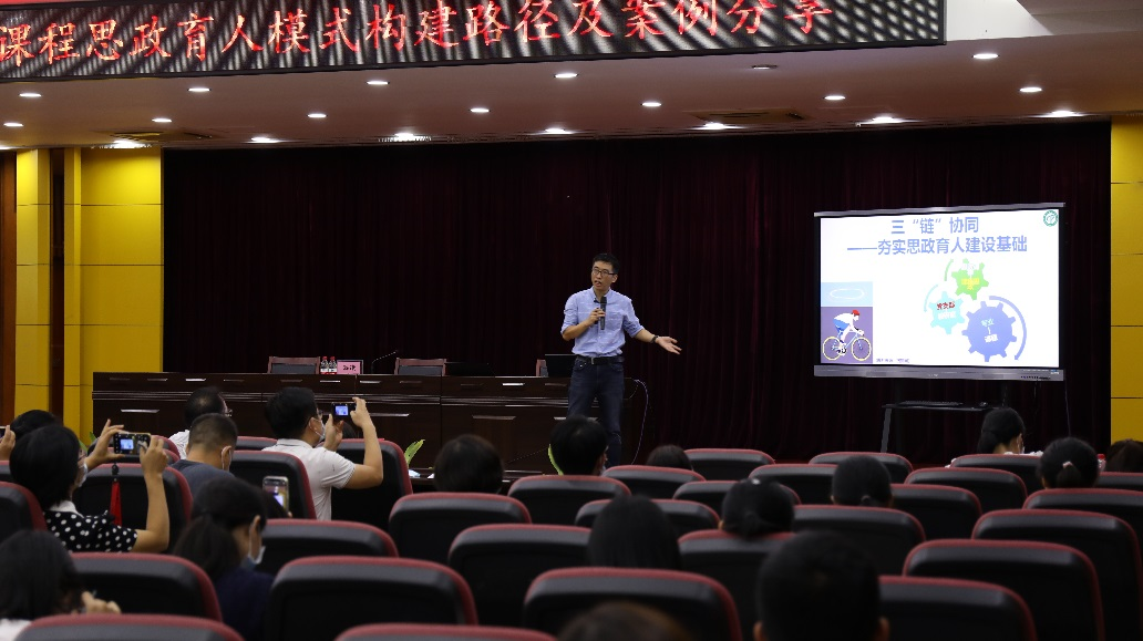孙璨教授从课程思政内涵出发,围绕专业特色鲜明的课程思政育人模式建构这一主题,全面深刻地从“关于课程思政的几点思考”、“基于专业特色的思政育人模式构建” 以及“案例分享与反思”等方面进行分享,最后他还生动地展示了一堂课的教学过程。孙教授以《礼记》中的名句,“师也者,教之以事而喻诸德者也”作为结束语,他认为,作为一名老师,不仅仅需要传授知识给学生,更重要的是注重培养学生的德行,做到立德树人,而育人是老师本身的一种责任。