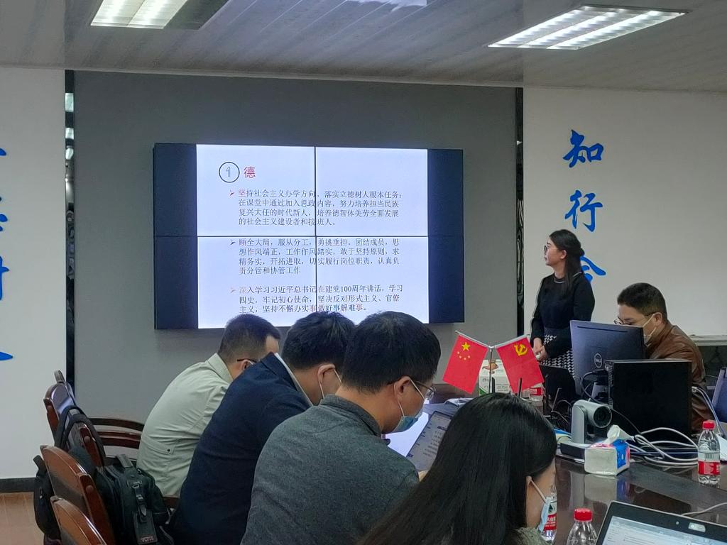 在12K205召开2021年度基层教学组织负责人述职考核会,学院中层干部、教师代表20余人担任考核评委。