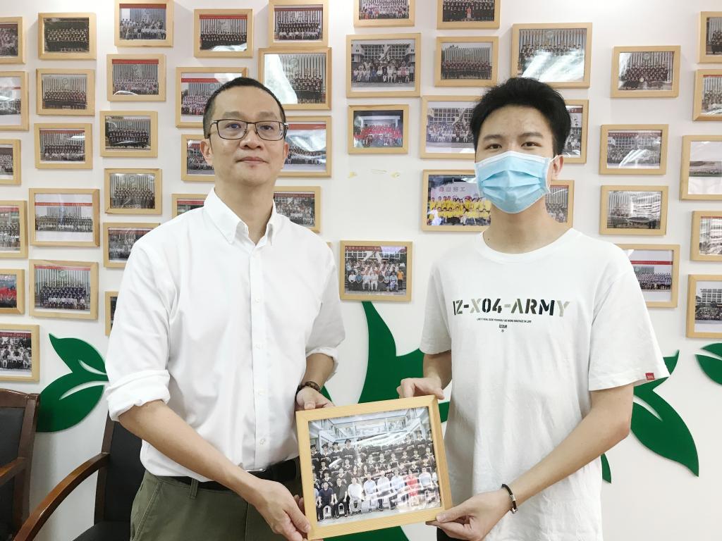 随后,郑愚院长和毕业生代表一起将毕业合照挂在校友墙上,象征着毕业生们从莞工学生变成莞工校友。同时,郑愚院长还给同学们送上寄语:“我们或许无法预料即将面对的未知和未来,但我们可以永远坚守和传承“学而知不足”的校训精神,以从容、淡定、自信拥抱未来,无惧风雨、一往无前、不懈追求,以不负时代不负韶华的青春之为绽放更为绚丽光彩的青春人生!