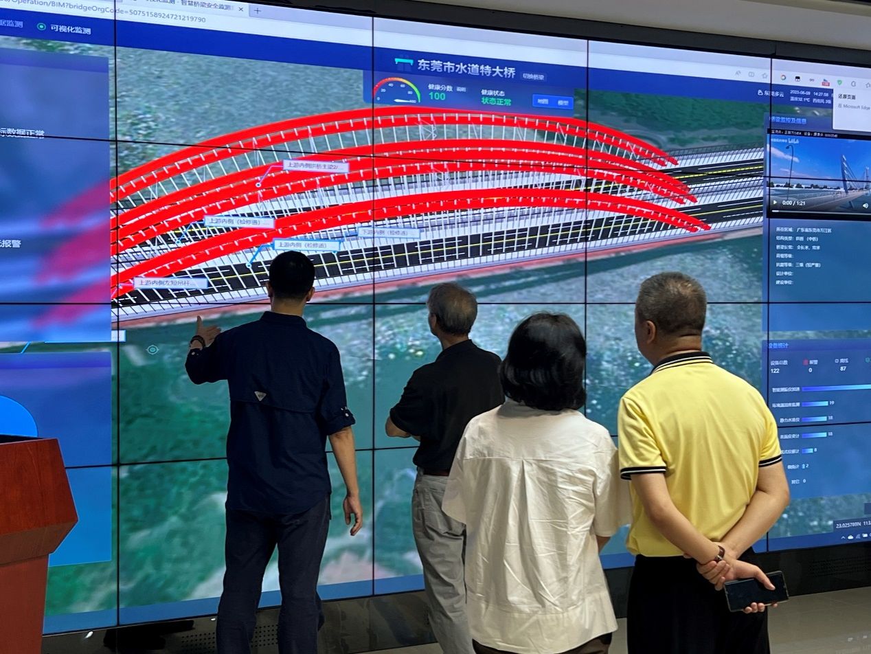 路桥系系主任胡守旺介绍,近年来,随着交通强国的建设,交通运输部出台系列关于公路长大桥梁健康监测系统建设的政策要求,明确广东、江苏等10省份11座在役桥梁作为系统建设试点。广东省适时出台了广东省公路长大桥梁结构健康监测系统建设方案,要求公路在役和在建单孔跨径500米以上的悬索桥、单孔跨径在300米以上的斜拉桥、单孔跨径160米以上的桥梁和单孔跨径200米以上的拱桥均应建立相应桥梁健康监测系统。东莞市委市政府高度重视交通基础设施服役安全,2021年12月,东莞市人民政府办公室印发《东莞市综合交通运输体系发展“十四五”规划》,要求推动新技术与交通行业深度融合,加快构建智慧交通基础设施监测平台。