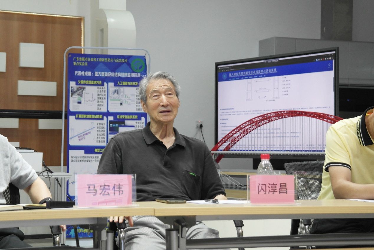 院长、省重点实验室副主任郑愚首先带领闪淳昌一行参观了省重点实验室并向来访人员演示了由我校牵头实施的东莞水道特大桥健康监测平台。随后,详细介绍了省重点实验室的研究目标、组织架构、代表性成果以及2023年重点开展的主要工作等。