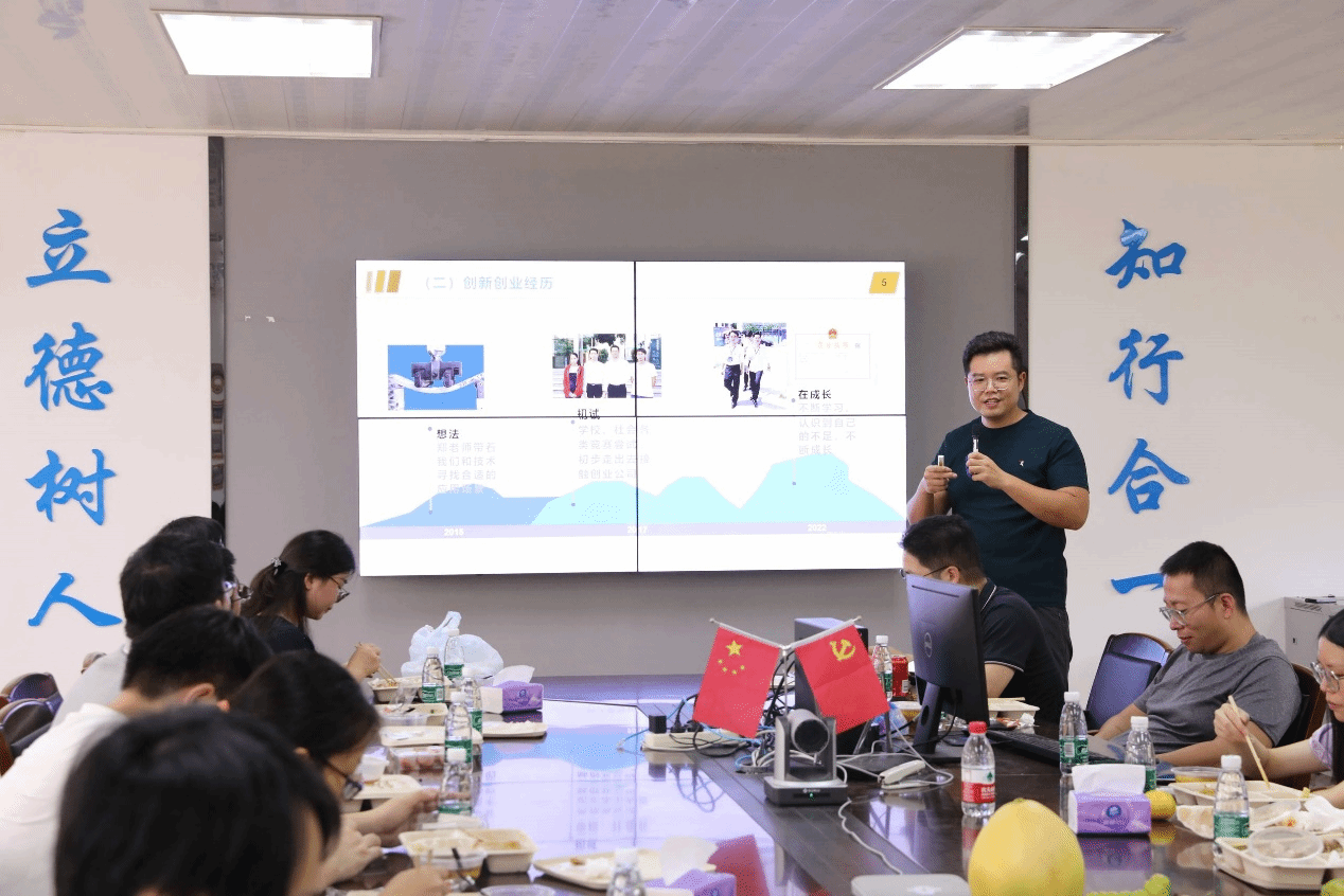 举行2023年秋季学期第一期午餐分享会,会议由艾心荧博士主持开场,由张黎飞博士进行“关于创新创业指导的心得与经验”为主题的分享交流,学院郑愚院长、孙璨副院长及一线教师20人参与了本次分享会。