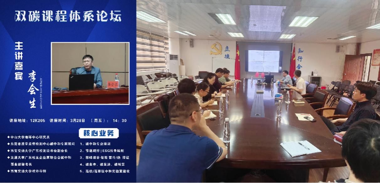 环境科学与工程系在12K205成功举办了《双碳和可持续发展》微专业课程体系研讨会。本次研讨会邀请到广州创想碳汇技术有限公司总经理李会生担任主讲人,学院副院长高峰以及相关课程骨干教师出席了会议。