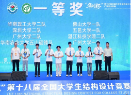由广东省大学生结构设计竞赛专家委员会的10位专家组成评审团,从理论设计方案、模型结构设计与制作质量、现场陈述与加载测试等方面进行综合评定,最终8支队伍获得一等奖、18支队伍获得二等奖、25支队伍获得三等奖。