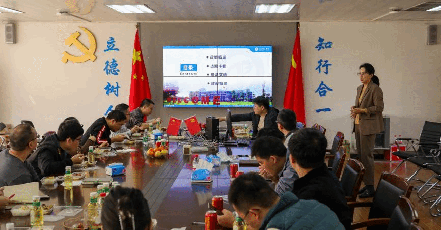 举行2023年秋季学期第四期午餐分享会,本次会议由路桥工程系承办,由系主任胡守旺博士主持,邀请教务部马妮博士进行“教学质量与教学改革工程项目申报建设分享会”为主题的分享交流,高峰副院长及一线教师20人参与了本次会议。