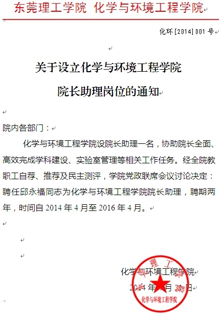 关于设立化学与环境工程学院专业实验室主任与基础实验室主任岗位的通知